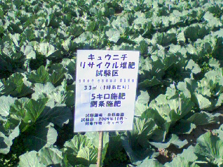 今年の9月に出来上がった肥料を宗像市の桑野農園さんのご協力を得て、リサイクル肥料の試験区を作っていただきキャベツを栽培しています
